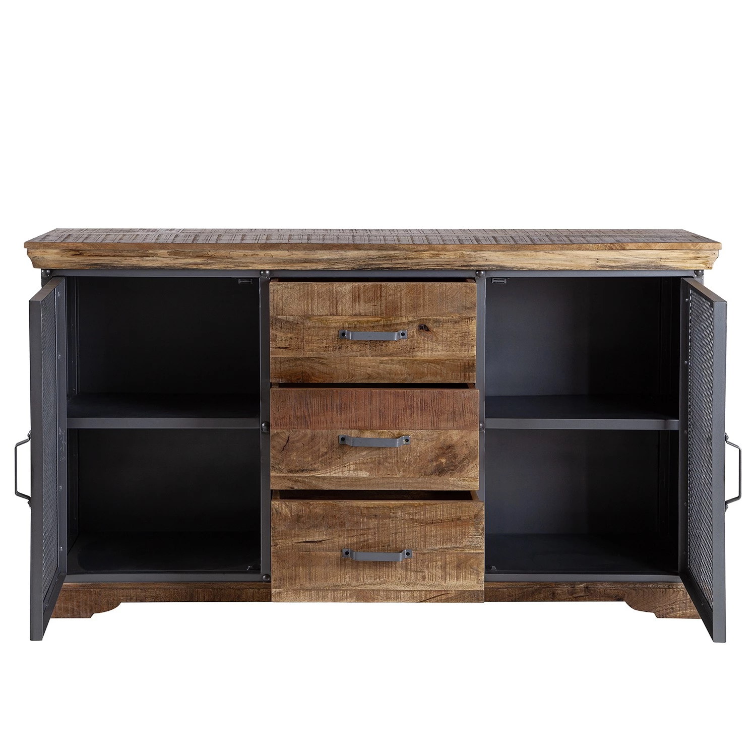 - Corniche, façade des tiroirs et socle : manguier massif, verni