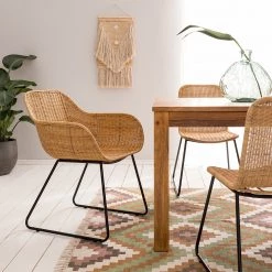 Ars manufacti Chaises à accoudoirs Metti – Rotin / Acier – Naturel / Noir
