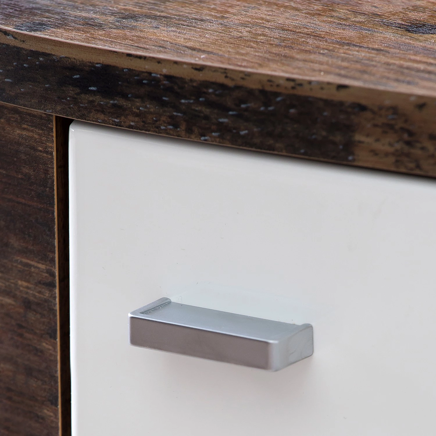 - Blanc brillant / Imitation bois recyclé