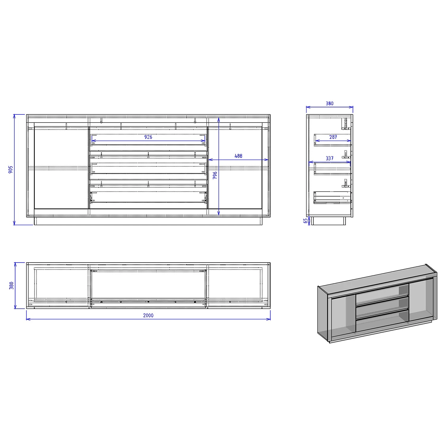 - Dimensions intérieures du tiroir : 92,6 x 8,5 x 28,7 (L x H x P)