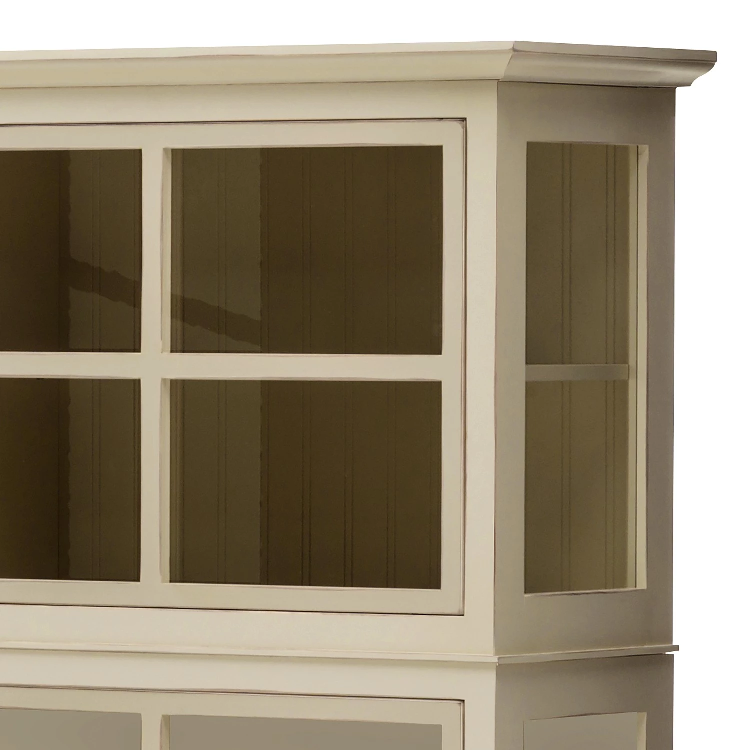 - 2 portes en verre et bois, chacune avec 1 tablette en bois