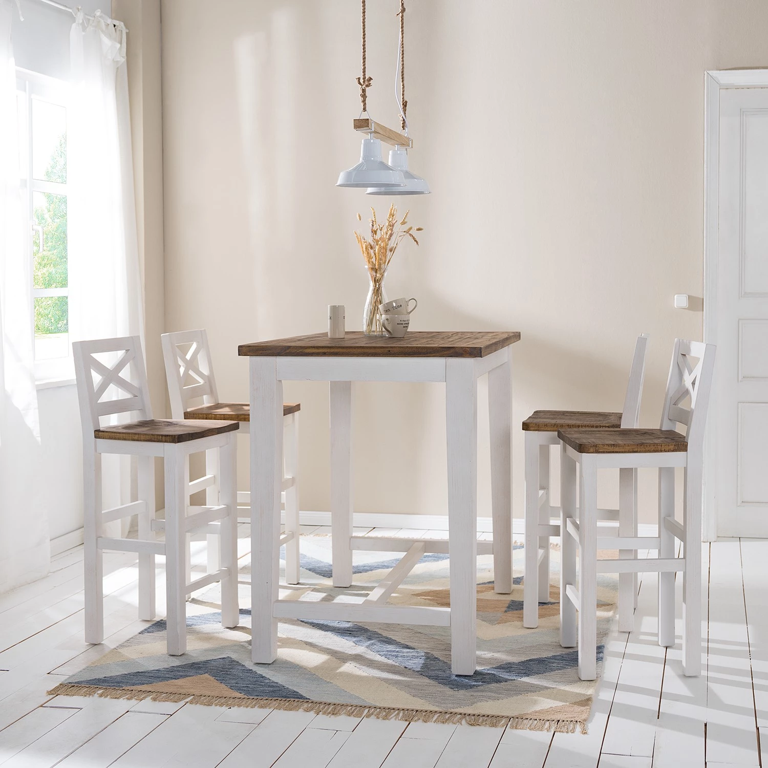 - Contenu de la livraison : Ensemble de bar comprenant 1 table haute et 4 chaises de bar