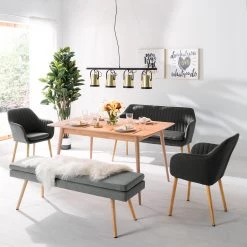 Mørteens Chaises à accoudoirs Tilanda – Tissu / Chêne massif – Tissu Cors: Gris foncé – Lot de 2