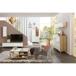 Maja Möbel Meuble murale Shino I – Verre blanc / Imitation chêne de Riviera – Largeur : 180 cm