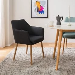 Mørteens Chaises à accoudoirs Tilanda – Tissu / Chêne massif – Tissu Cors: Granite – Lot de 2