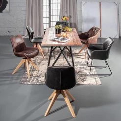 Red Living Table Dahab – Bois recyclé orme massif / Acier – Orme / Noir – Largeur : 180 cm