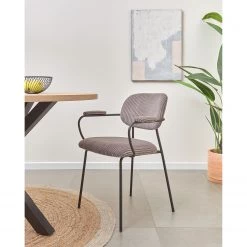 Loftscape Chaise à accoudoirs Pierry II (lot de 2) – Velours / Acier – Taupe