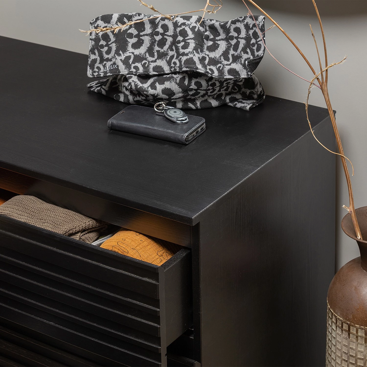 - Dimensions intérieures du tiroir : 76 x 15 x 38 cm chaque