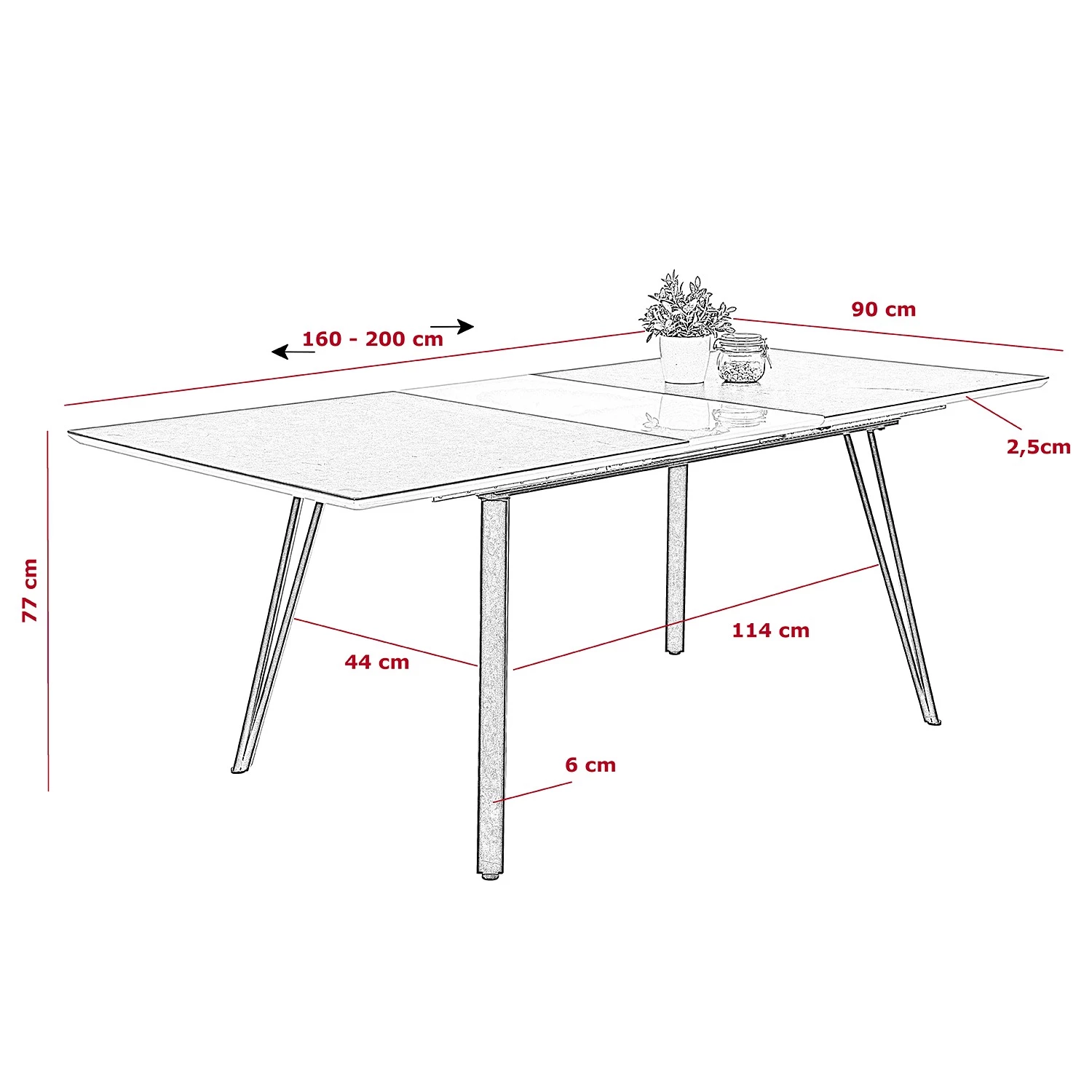 - Autres dimensions : Extensible jusqu’à 200 cm